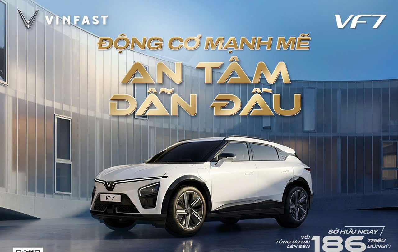 🔥 Cơ hội sở hữu VinFast VF 7 với tổng giá trị ưu đãi lên đến 186 triệu đồng (*), giúp bạn dễ dàng rước xe sang đón Tết.