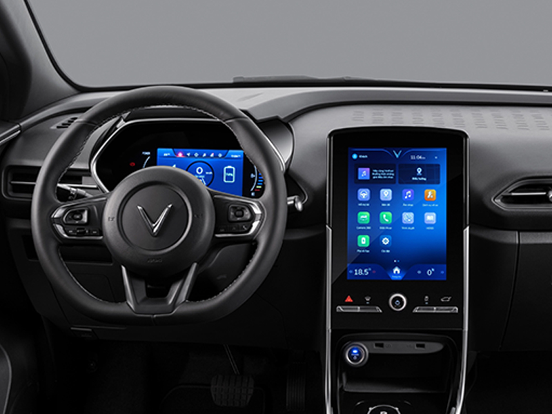 Bảng điều khiển trung tâm được thiết kế tối giản, nổi bật với màn hình cảm ứng 10,4 inch (dựa trên các dòng xe VinFast khác như VF 5), tích hợp hệ thống giải trí, định vị GPS và trợ lý ảo thông minh hỗ trợ tiếng Việt. Hàng ghế thứ 2 có thể gập theo tỷ lệ 60:40, mở rộng khoang hành lý khi cần thiết, đáp ứng linh hoạt nhu cầu chở người hoặc hàng hóa. Các tiện ích như cổng sạc USB, hộc chứa đồ và cửa gió điều hòa phía sau (dự kiến) đảm bảo hành khách luôn thoải mái trong suốt hành trình.